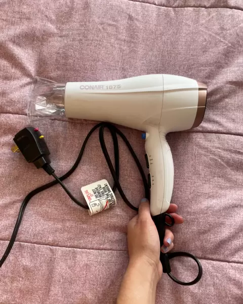 Secadora CONAIR 1875 doble cerámica. Secadora doble cerámica con tecnología de doble cerámica más iones acondicionadores para combatir el frizz para menos daño y más brillo! 🥳 La compré estando en EUA, pero solo para una urgencia jejej, la usé 1 sola vez.🥳Medidas: 9.9 x 30.2 x 23.8 cm