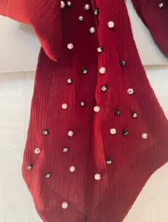 Los accesorios son el complemento de cualquier outfit!! Collar tipo corbatin en color borgonia con aplicaciones de brillo y perlas para mas elegancia. Tambien lo puedes usar solo con un sueter con cuello en V para lucirlo de dia o de noche. El detalle elgante en tu gurdarropa. No mascotas y no fumadora. Con sus ajustadores como prueba de que es nuevo. Mas opciones en mi closet.