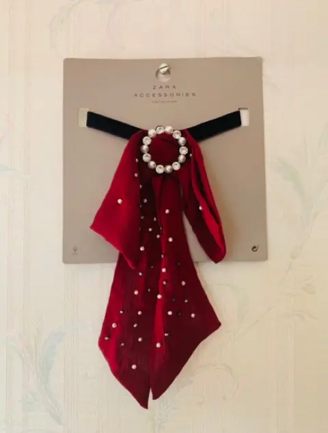 Accesorio para el pelo con brillo NUEVO!!. Los accesorios son el complemento de cualquier outfit!! Collar tipo corbatin en color borgonia con aplicaciones de brillo y perlas para mas elegancia. Tambien lo puedes usar solo con un sueter con cuello en V para lucirlo de dia o de noche. El detalle elgante en tu gurdarropa. No mascotas y no fumadora. Con sus ajustadores como prueba de que es nuevo. Mas opciones en mi closet.