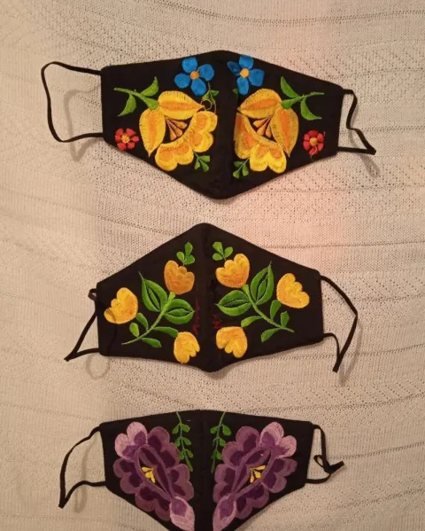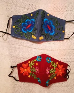 2 Cubrebocas tri capa2 cubrebocas por $160Bordado artesanal a máquina, varios modelosTela de lino y algodónDe mujer:Largo 21.5 cmLargo de nariz a barbilla 12 cm