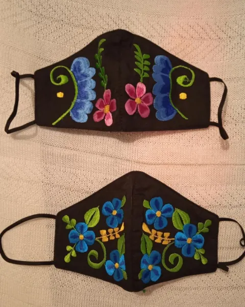 Cubrebocas bordado yucateco. 2 Cubrebocas tri capa2 cubrebocas por $160Bordado artesanal a máquina, varios modelosTela de lino y algodónDe mujer:Largo 21.5 cmLargo de nariz a barbilla 12 cm