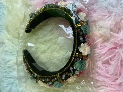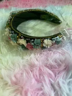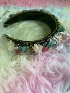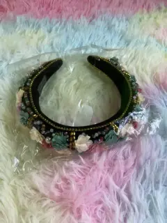 Diadema barroca con flores. Hermosa diadema con piedras y flores, estilo barroca, acolchada y aterciopelada.