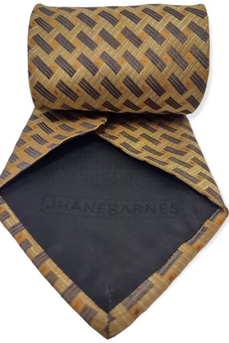 Jhanebarnes Corbata Clásica Seda Dorada. Corbata Jhanebarnes Clásica Seda DoradaHermosa corbata italiana en color dorado y sedaArtículo: CorbataMarca: JhanebarnesColor: Dorado y barras marronesEstilo: ClásicoComposición: Toda SedaOrigen: ItaliaTela: Seda ItalianaForro: AcetatoEntretela: AlgodónManufactura: Hecho a manoAncho: 10 cmLargo: 1.50 mtAclaro tus dudas