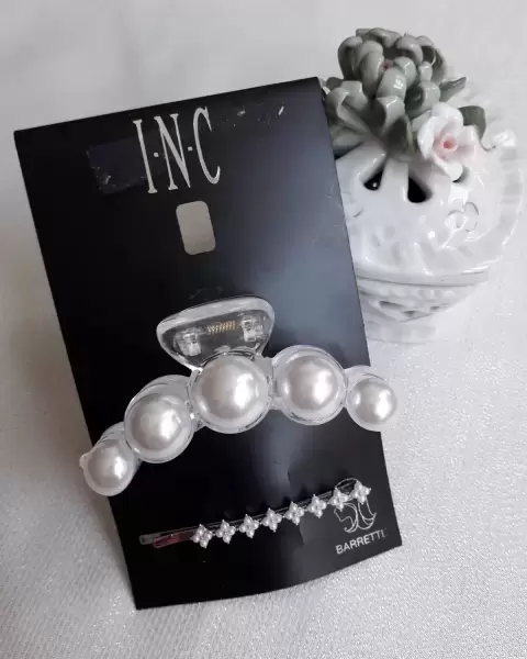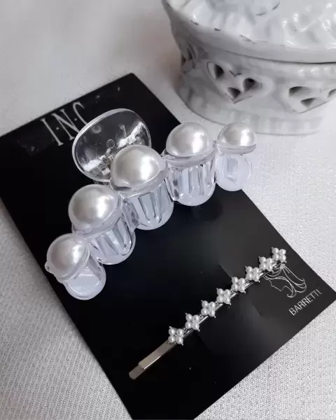 Bonitos accesorios para cabello, incluye pinza con medias perlas sintéticas e incaíble con diseño de diminutas y delicadas perlitas. Súper padres!!