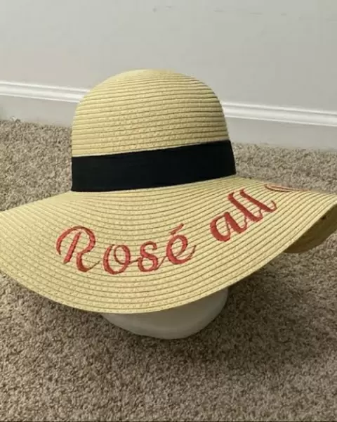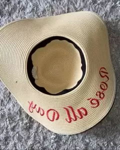 Sombrero de playa tejido con cinta negra & hermoso bordado diametro aproximadamente Rosè All Day