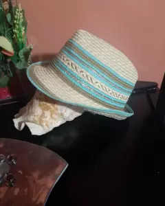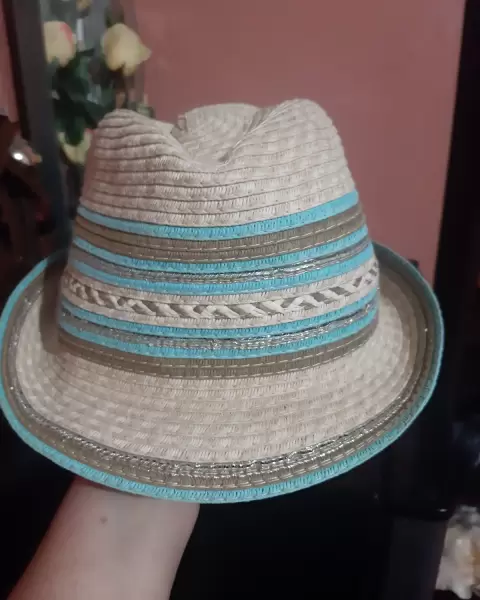 Bonito sombrero para esta temporada detalles de hilo dorado turquesa y café