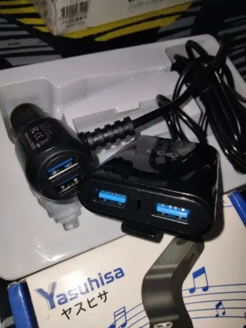 3 cargadores d automóvil 🚘🚗. Los tres se van EL PRIMERO ES "MARCA"YASUHISA" PARA PONERLE MEMORIA DE MUSICA TANTO USB Micro CD TRAE BOTONES PARA SUBIR BAJAR VOLUMEN APAGAR Y EL DE "MARCA" TRANSHINE DE 4 SALIDAS PARA CELULAR Y EL DE MARCA "MOBO"DE UNA SOLA SALIDA A iPhone los tres se van