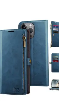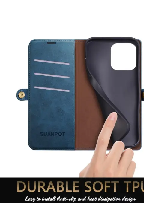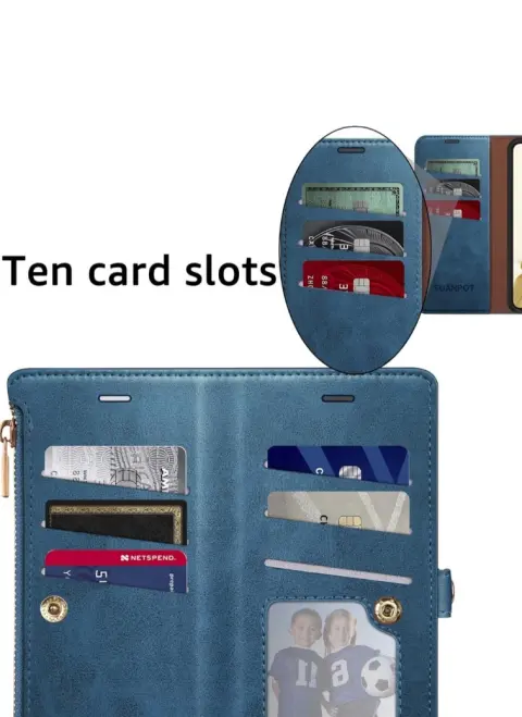 SUANPOT Funda tipo cartera para iPhone 14 Pro de 6.1 pulgadas con bloqueo RFID, 9 ranuras para tarjetas, bolsillo, tarjetero con tapa, cierre de libro, funda protectora de piel sintética