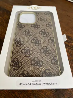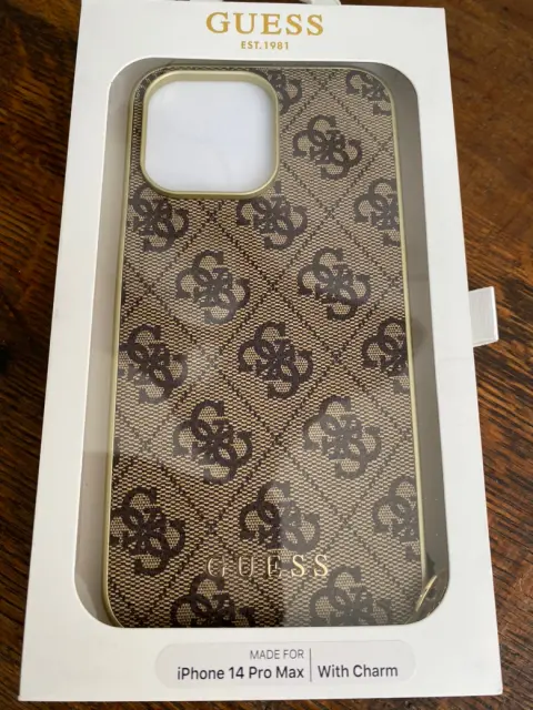 Funda para iPhone 14 Pro Max de la marca Guess diseño color café increíble modelo