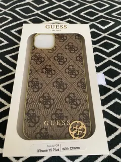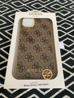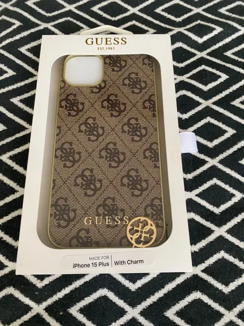 Funda Guess 15 plus iPhone. Funda para el iPhone 15 plus diseño de la marca Guess color café con charm