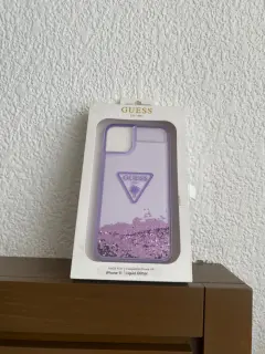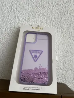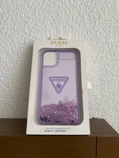 Funda Guess iPhone 11. Funda glitter para iPhone 11 morado diseño increíble de la marca Guess modelo iPhone 11