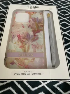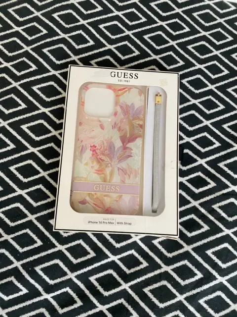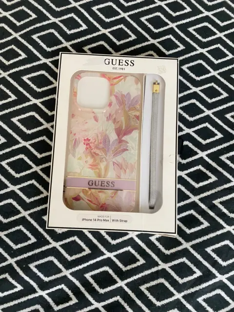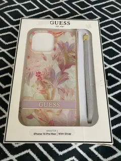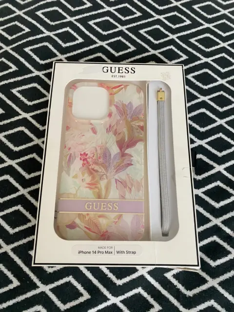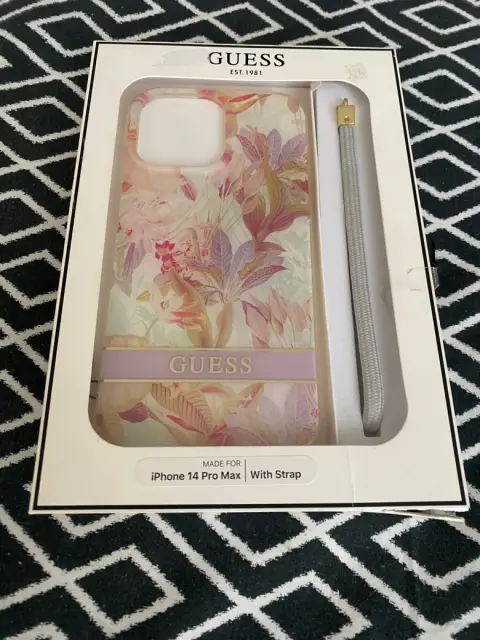 Funda para iPhone 14 Pro Max de la marca Guess diseño de flores con cordón