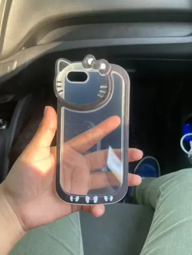 Funda compatible con iPhone 7,8, se también compatible con iPhone 6 solo que le queda un poco grande de la cámara y le tapa minimante la misma cámara de la parte de arriba. No es algo que le impida usar la funda a la perfección. Es un linda funda con la silueta de hello kitty se ve súper 🥹🥹🥹Checar la información de la ultima foto 😋