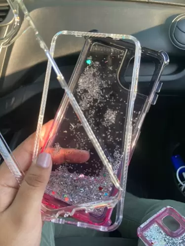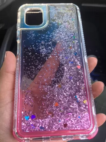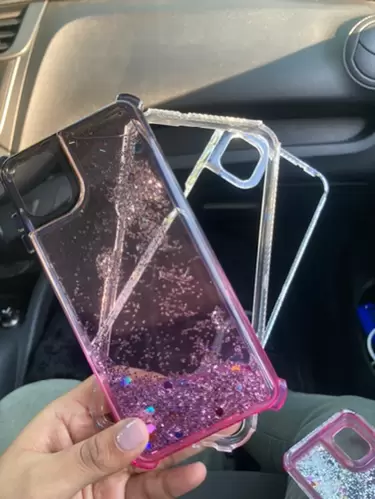 Funda de uso rudo con glitter que se mueve es muy entretenida, es de 3 piezas protege súper bien tu equipo. Vale mucho la pena además de que se ve espectacular 😝Información importante en la ultima foto ☺️