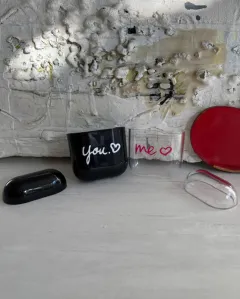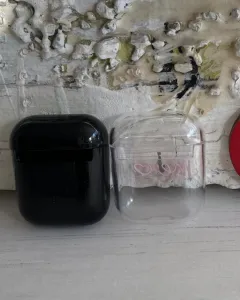 Par de fundas para AirPods. Son dos fundas acrílicas rígidas, una negra y otra transparente.Los AirPods entran a presión para mayor seguridad, no los pruebo ya que las fundas son nuevas.