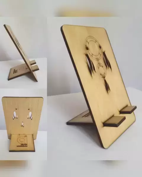 ***PRECIO NO NEGOCIABLE, por favor no regatees, la venta de esta pieza ayuda a personas que perdieron su empleo y su compra les ayuda a llevar el sustento a su familia. Gracias por ayudarme a ayudarlos***Porta celular artesanal en madera (no es MDF), tono natural, modelo ATRAPASUEÑOS. Desmontable, puedes llevarlo en tu bolsa o maleta. Soporta un celular o tablet sin problemas. Dimensiones cms: 11.5 largo, 19 alto, 0.4 profundidad. Base: 8.5 largo, 10.5 alto, 0.4 profundidad.