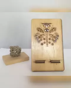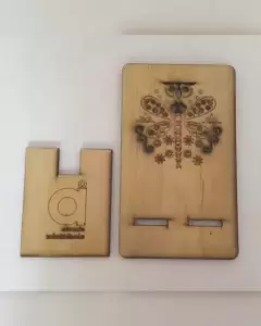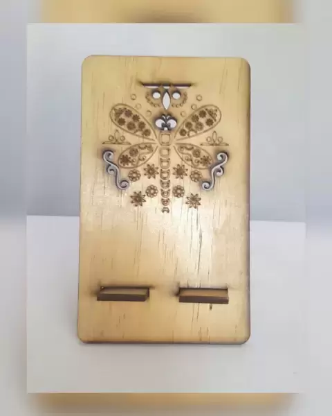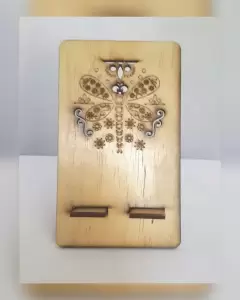 ***PRECIO NO NEGOCIABLE, por favor no regatees, La venta de esta pieza ayuda a personas que perdieron su empleo y su compra les ayuda a llevar el sustento a su familia. Gracias por ayudarme a ayudarlos***Porta celular artesanal en madera (no es MDF), tono natural, modelo LIBÉLULA. Desmontable, puedes llevarlo en tu bolsa o maleta. Soporta un celular o tablet sin problemas. Dimensiones cms: 11.5 largo, 19 alto, 0.4 profundidad. Base: 8.5 largo, 10.5 alto, 0.4 profundidad