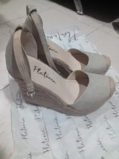 Alpargata color beis plataforma talla 4, muy cómoda.