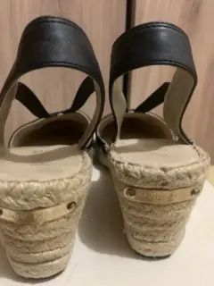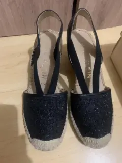 Alpargatas Anne Klein color negro con brillos y elásticos.muy poco usos