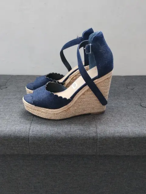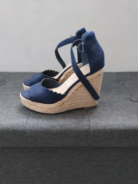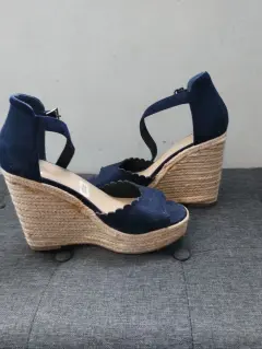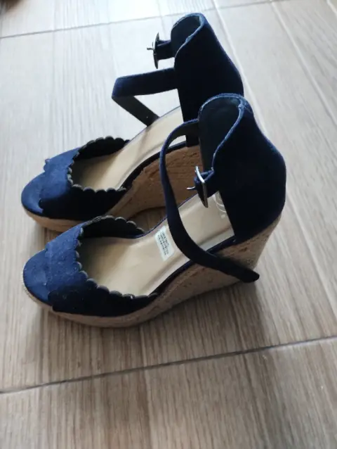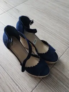 Alpargatas azul marino ,tacon 10 cm , con ajuste en tobillo con hebilla, nuevos e ideales para este tipo de clima