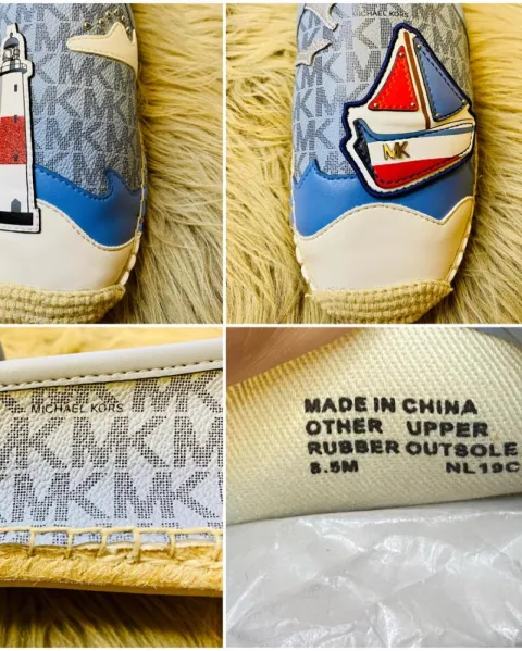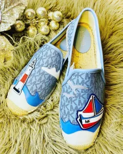 Hermosas alpargatas edición especial MICHAEL KORS, confeccionadas en bello color azul cielo monogram con estampado de un faro y barquito. Talla: 25.5 México. Súper cómodos y muy adecuados para la estación del año. Producto nuevo sin caja. ¡Llévalos contigo a todos lados!