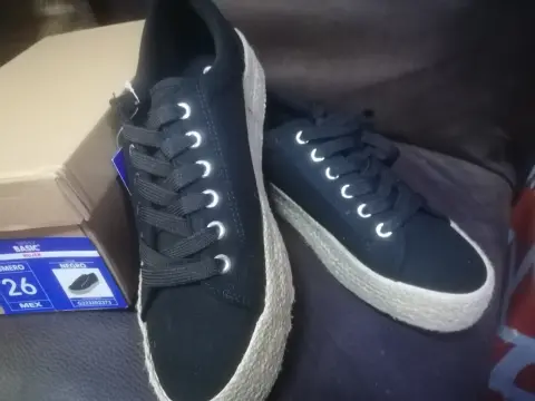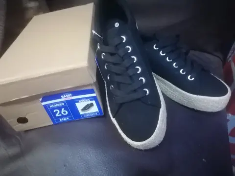 Alpargatas Basic de lona 26. Hermosa y lindas alpargatas de lona color negro talla 26 nuevas con caja suela de yute plataforma de 3.5 centímetros cómodas y frescas le va perfecto a cualquier estilo y moda, en todos los precios de mi clouser me puedes ofertar y puedo ajustar tu pedido para una sola exhibición.