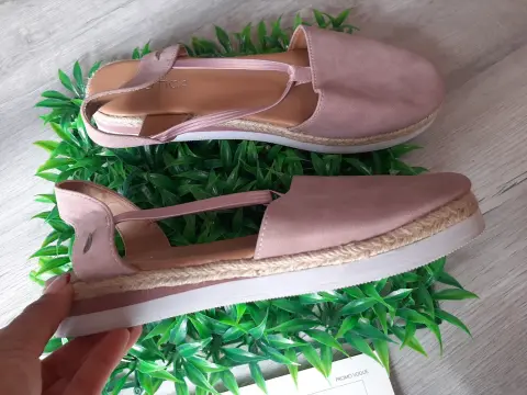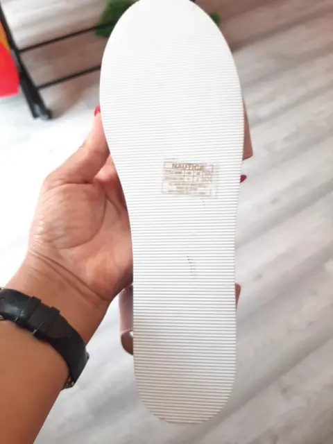 Bonitas Alpargatas de ante color rosa, con plataforma plana, el frente es de punta redonda con tiras elásticas. Son marca Náutica originales. No se tiene su caja original. Sin detalles.