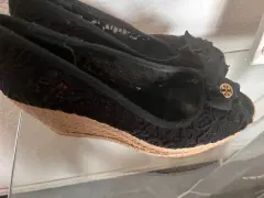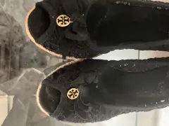 Alpargatas tory burch talla 27 mx. Alpargatas tory burch, en tela,Originales, usadas, talla 27 mexicano, color negro con adornito de la marca en color dorado