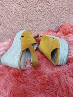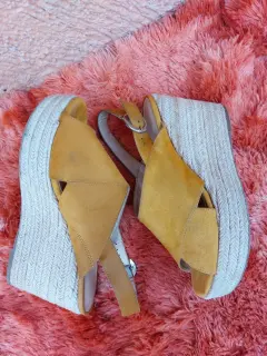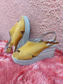 Alpargatas Westies. Alpargatas cerradas super cómodas color mostaza como evilla ajustable y de tacón corrido en detalle tejido, de gamuza en talla #26