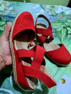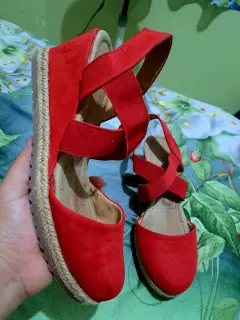 Marca cklass, interior en piel,plataforma con Yute, color rojo con elástico intacto...No rallados ni descarapelados#5 vienen en su número