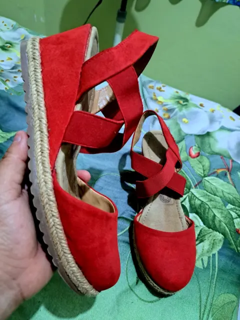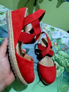 Plataforma rojos. Marca cklass, interior en piel,plataforma con Yute, color rojo con elástico intacto...No rallados ni descarapelados#5 vienen en su número