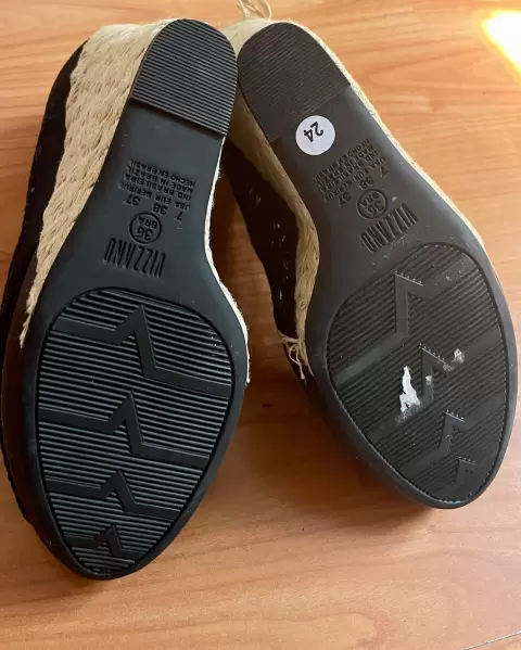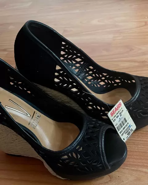 Descripción:Zapato con plataforma, hechos en Brasil, de gamuza, con yute, suela acolchonada, color negro