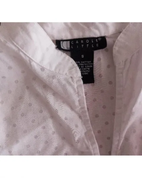 Blusa blanca básica se ajusta a l cintura, manga corta, tiene estampado de puntos