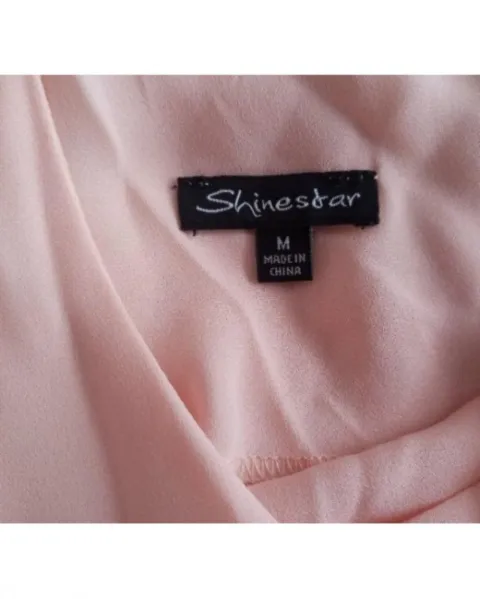 Blusa básica en tono rosa claro, cuello v, en la parte del visto la tela es doble para que no transparente