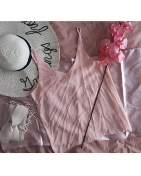 4 PRENDAS X 300. Blusa básica en tono rosa claro, cuello v, en la parte del visto la tela es doble para que no transparente