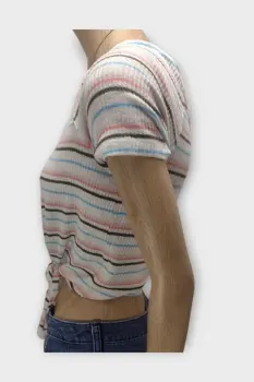 Abercrombie & Fitch Blusa Crop Top Blanco S. Abercrombie & Fitch Blusa Crop Top Dama Blanco SBlusa marca Abercrombie & Fitch 54%Viscosa 42% Poliéster 4% ElastanoMarca: Abercrombie & FitchOrigen: VietnamMaterial: 54%Viscosa 42% Poliéster 4% ElastanoTalla: SEstilo: CasualPatrón: Crop TopColor: Blanco con rayasCierre: AbiertoPecho: 42 cmLargo: 40 cmHombro: 36 cmManga: 23 cmRopa de USO en muy buen estado