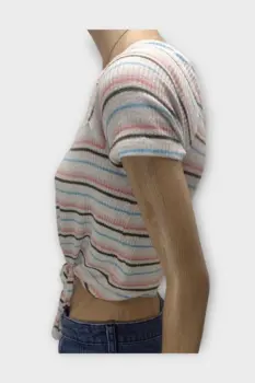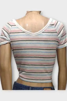 Abercrombie & Fitch Blusa Crop Top Blanco S. Abercrombie & Fitch Blusa Crop Top Dama Blanco SBlusa marca Abercrombie & Fitch 54%Viscosa 42% Poliéster 4% ElastanoMarca: Abercrombie & FitchOrigen: VietnamMaterial: 54%Viscosa 42% Poliéster 4% ElastanoTalla: SEstilo: CasualPatrón: Crop TopColor: Blanco con rayasCierre: AbiertoPecho: 42 cmLargo: 40 cmHombro: 36 cmManga: 23 cmRopa de USO en muy buen estado
