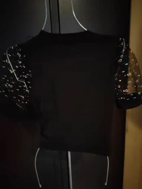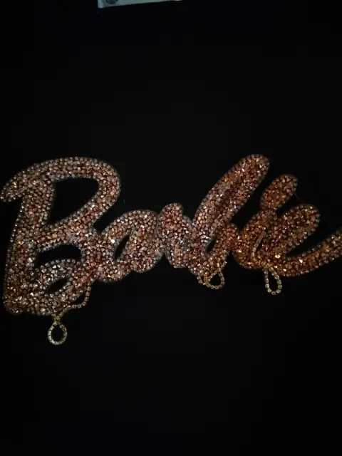 Barbie está de moda. Vístete con esta hermosa blusa negra corta, con bordado de Barbie dorado en lentejuelas al frente. A estrenar sin detalles.