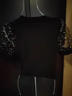 Barbie Blusa negra Crop con Bordado dorado