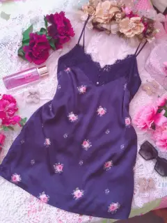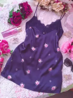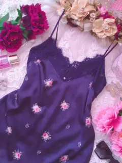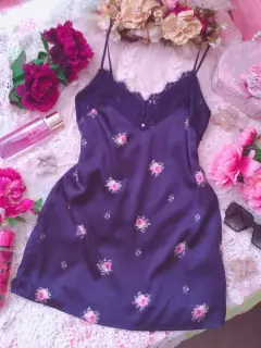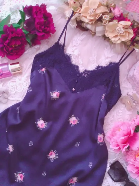 Linda y bella blusa lencera de encaje y satín color azul marino con estampado floral, tirantes ajustables, sin detalles ni roturas. Por favor checar bien las fotos para evitar devolución o calificación no concordante a mi descripción. Envíos los lunes ❤️