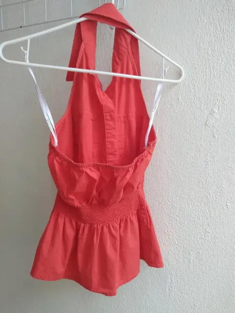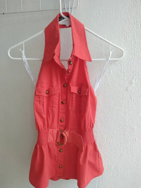 Bella blusa veraniega. Hermoso color naranja, botones metálicos, media espalda, bellos detalles en la cintura