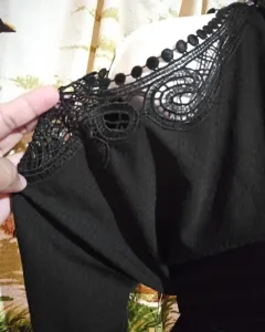 BLUSA. Hermosa blusa marca 7thAvenue (New York & Company) color negra, talla G. Descubierta en la parte de los hombros y con adornos. La prenda va sin accesorios. A estrenar sin etiqueta y sin detalles.