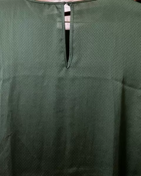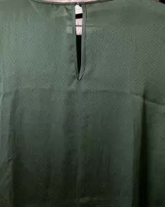 Blusa fresca, tela tipo satén verde botella, manga corta, con botón en la espalda. Ideal para oficina, alguna cita casual.