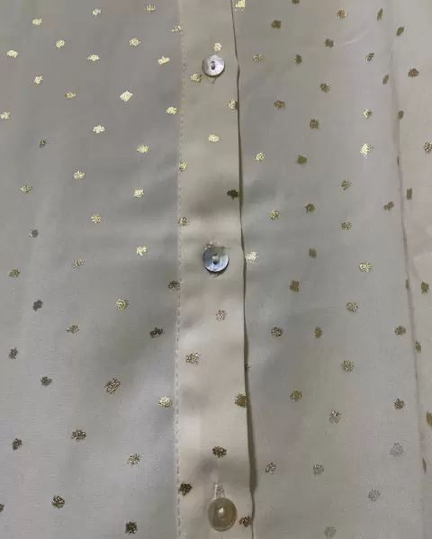 Blusa. Blusa en tono crema con lunares dorados. Botones al frente y un Olán delgado en cada manga. Muy fresca, tela suave