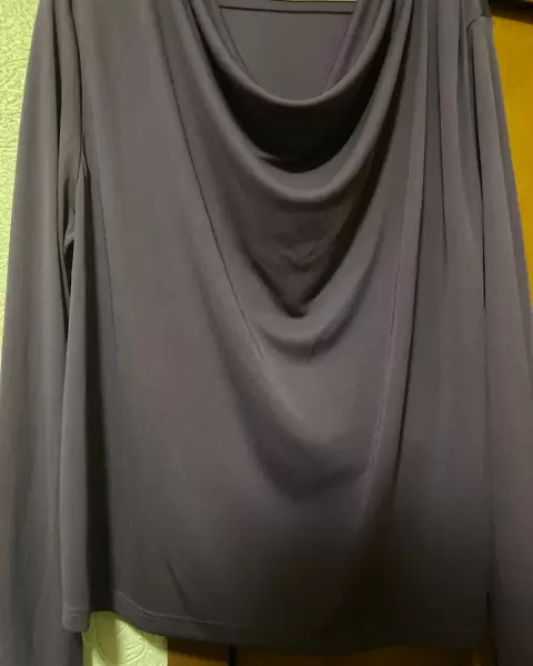 Hermosa blusa morada de manga larga, cuello redondo; ideal para vestir formal/ casual. Tela fresca. Nueva sin etiquetas.