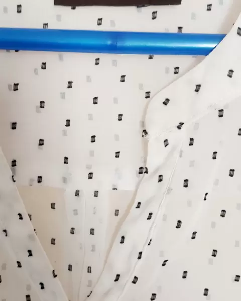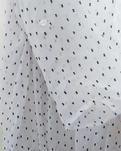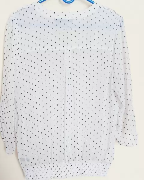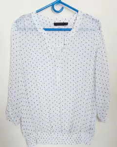 Blusa. Blusa blanca de lunares negros en relieve, semitransparente, amplia y fresca con resorte en la cintura