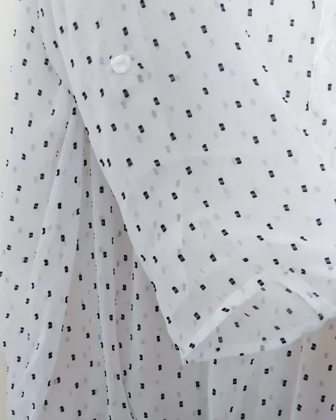 Blusa blanca de lunares negros en relieve, semitransparente, amplia y fresca con resorte en la cintura