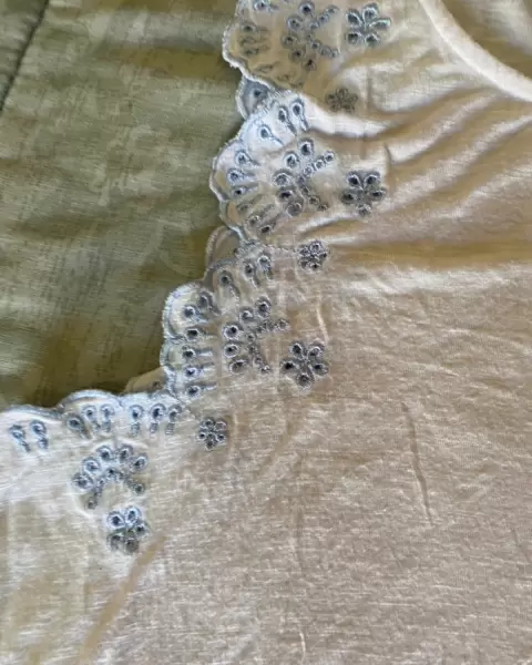 Blusa sin mangas color blanco con bordado azul, muy bonita talla M.