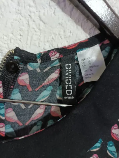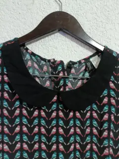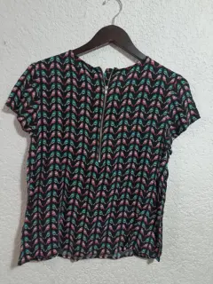 Blusa. Blusa manga corta negra con detalles de pajaritos y un cierre en la parte de atras sin nungun detalle