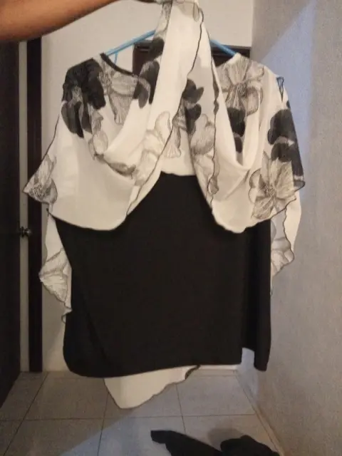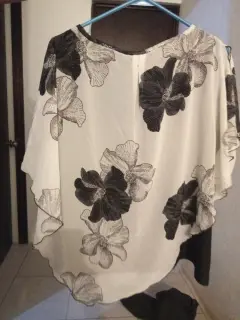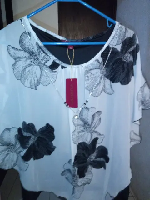 Blusa color blanco y negro, Marca Sahara, totalmente nueva, incluye accesorio, talla 4EG, tela fresca y delgada, ideal para toda ocasión